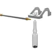 专利设计对中装置,针对1 ml 安瓿瓶也可精准定位,保证灌装针居中进入安瓿瓶,避免液体沾染瓶口